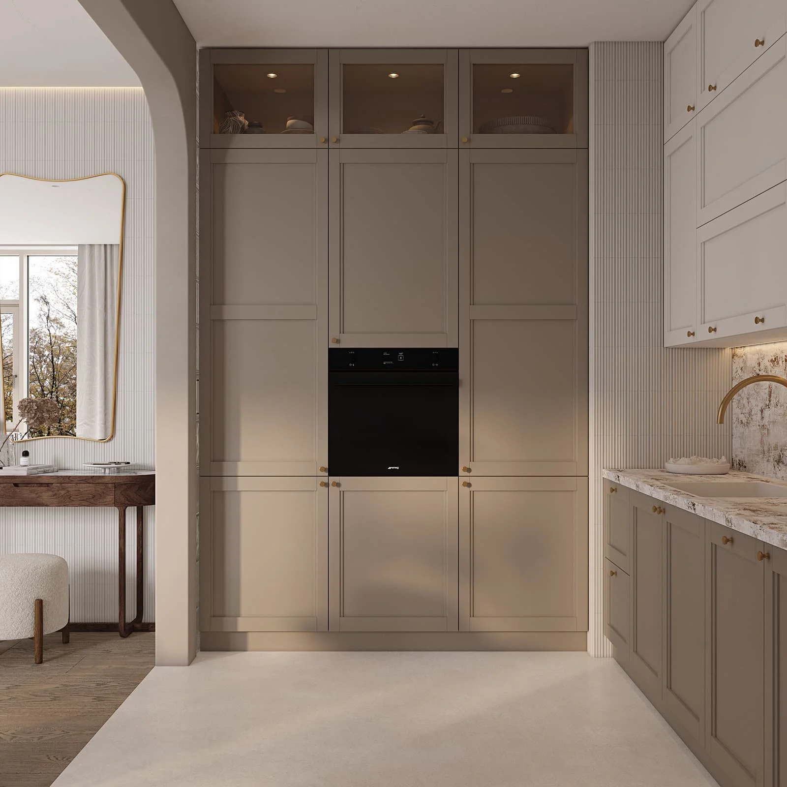 kitchen collection Materials Cabinet boxes Hardware & accessories Gallery Retail / Amalia Amalia Fronts: Т370 Natural alder wood, color NCS S 5005-Y20R / NCS S 1002-Y
