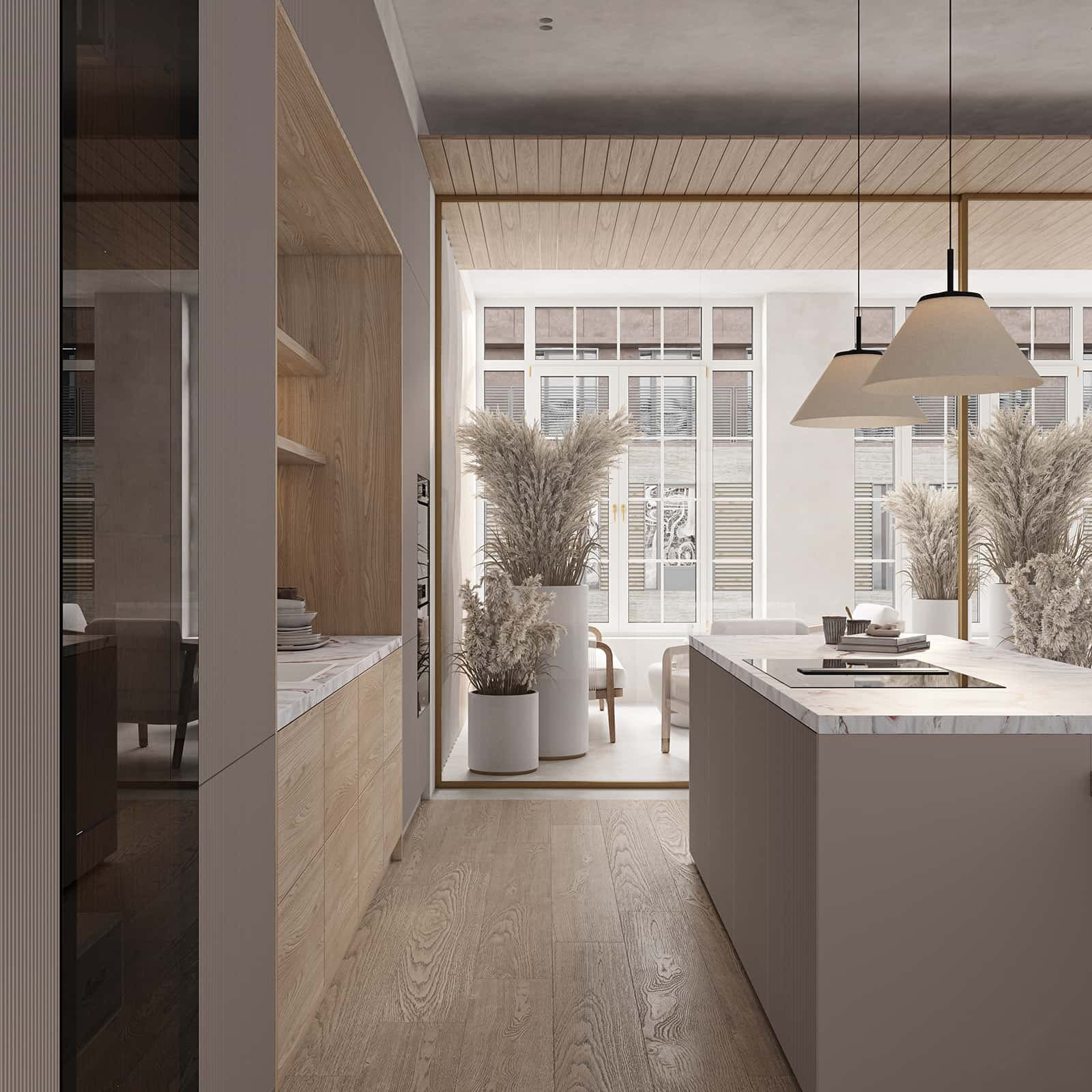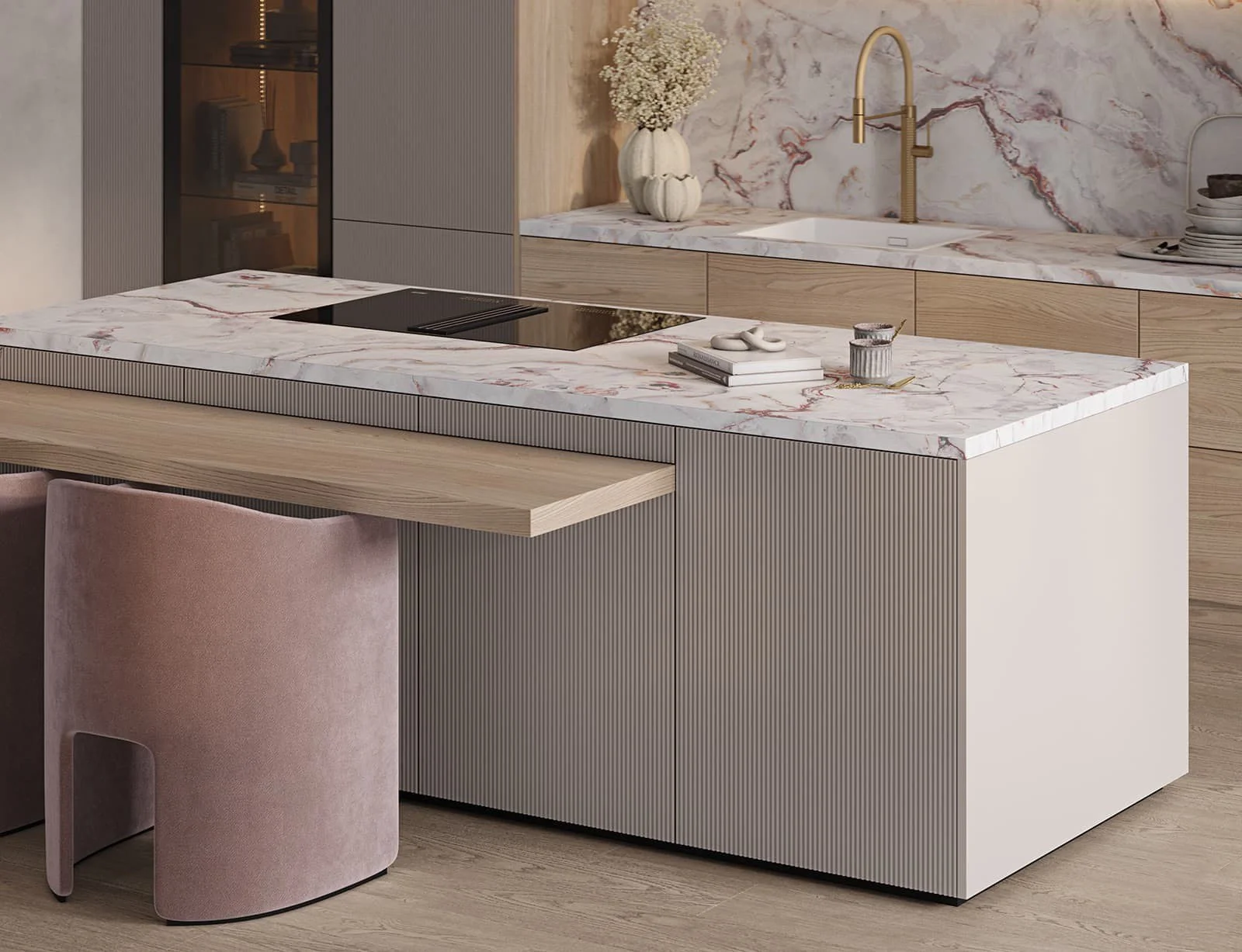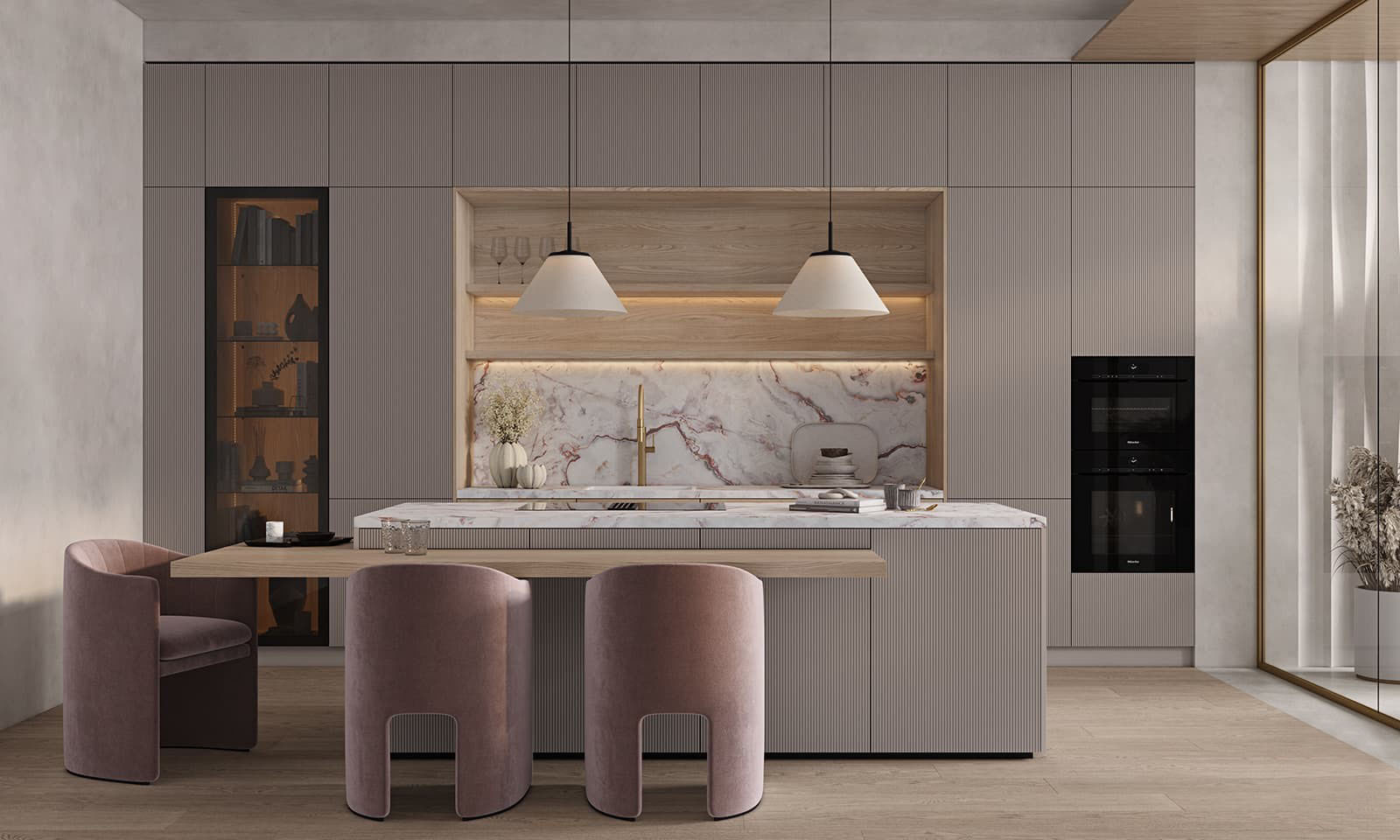 Fronts: T645 Lacquered MDF, color NCS S 2000-N Matt / T419G Oak wood veneer, color #189 (wax stain White)