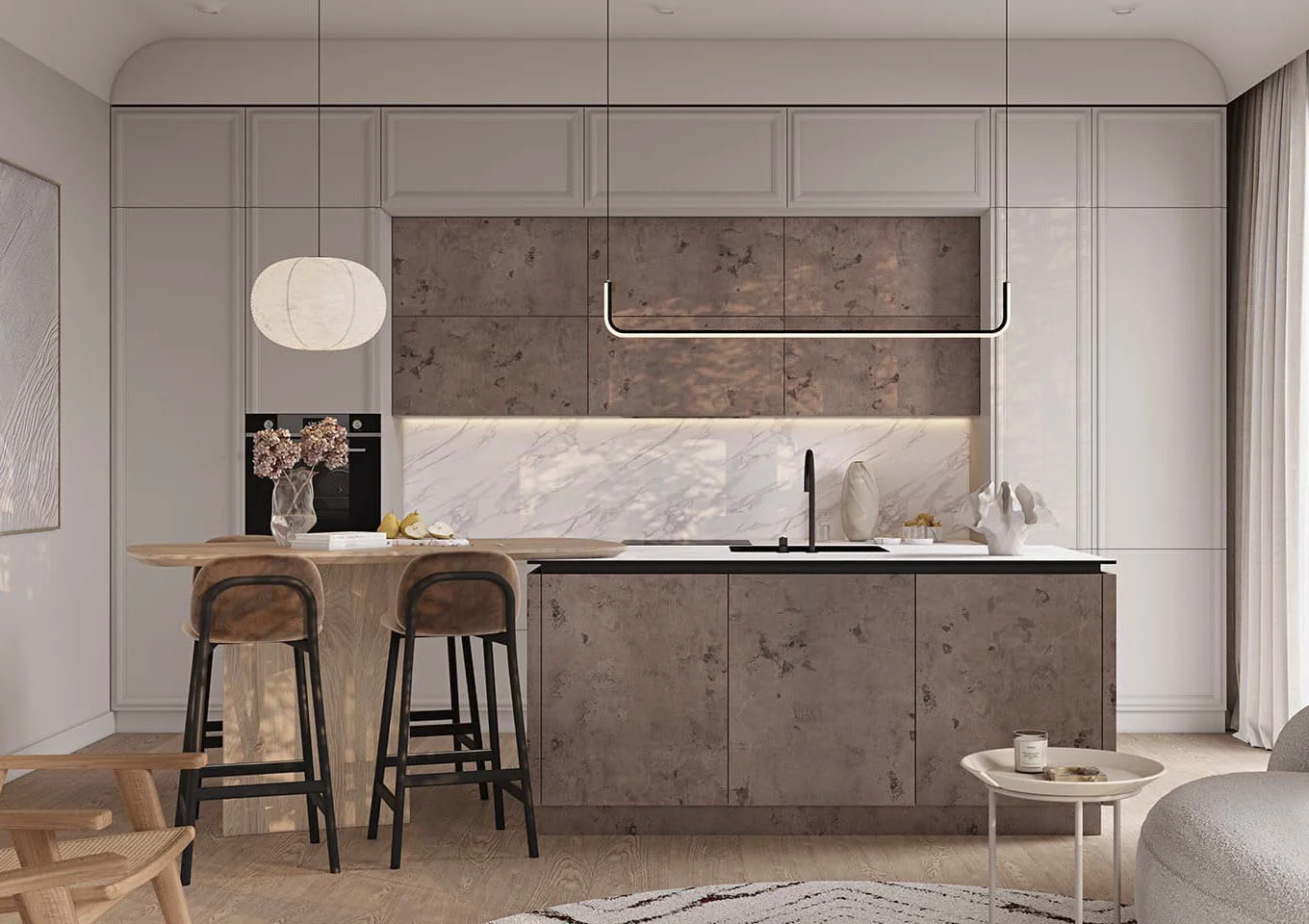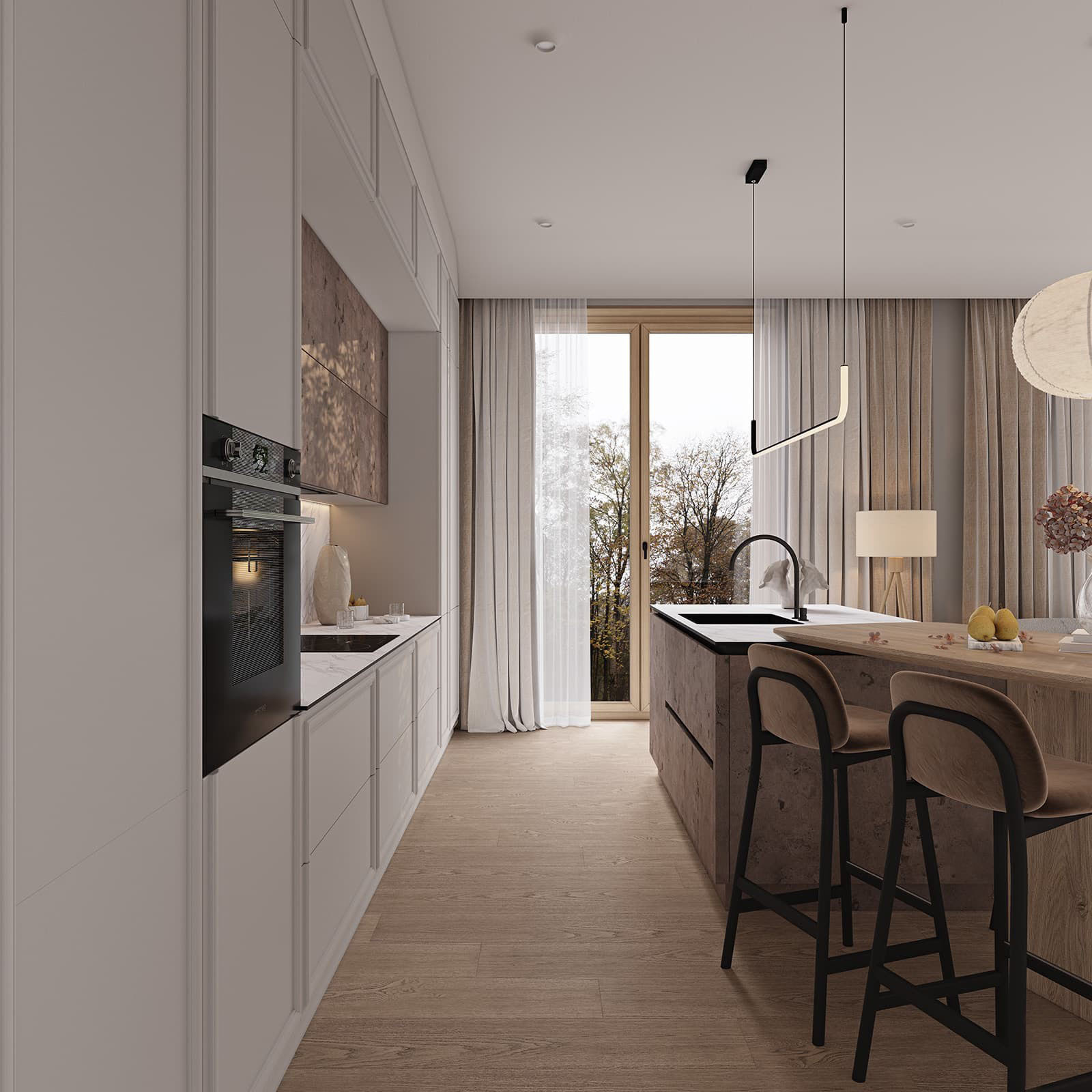 Fronts: T648 Lacquered MDF / solid alder wood, color 156; MFC Syncron, design Titanio
