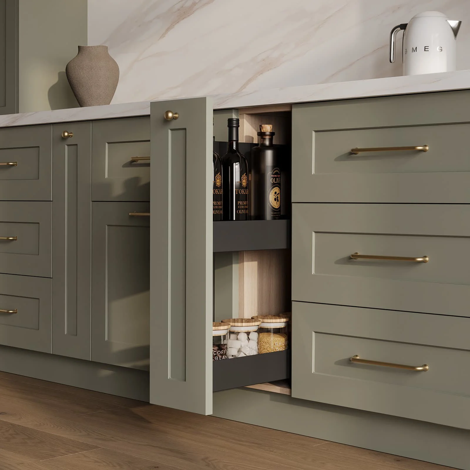 Fronts: Livon (MDF / PVC), color NCS S 3010-G20Y