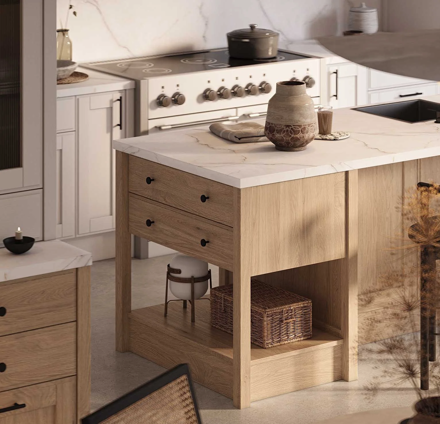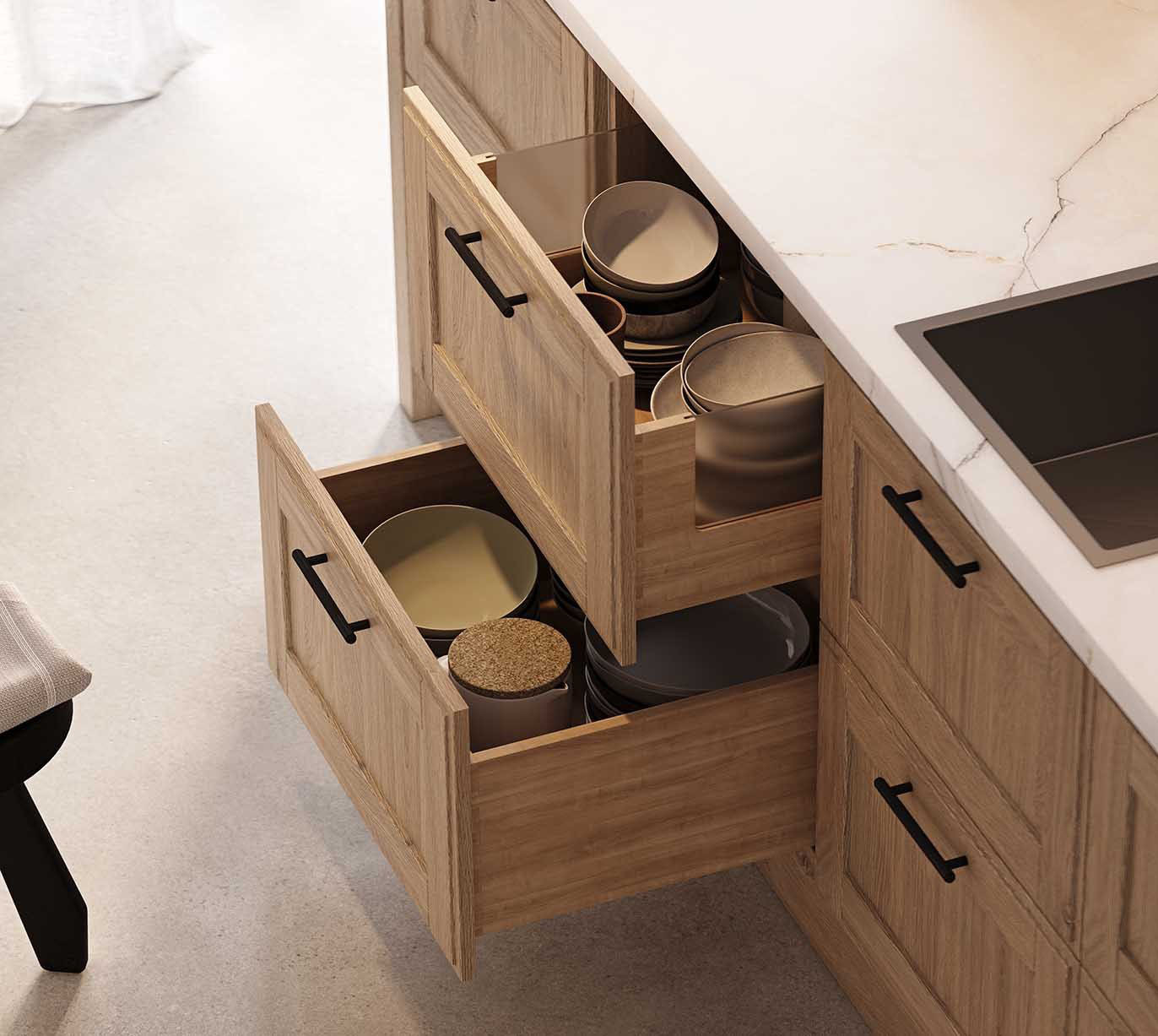 Drawers: natural alder wood, color #183 (oil-wax finish Clear)