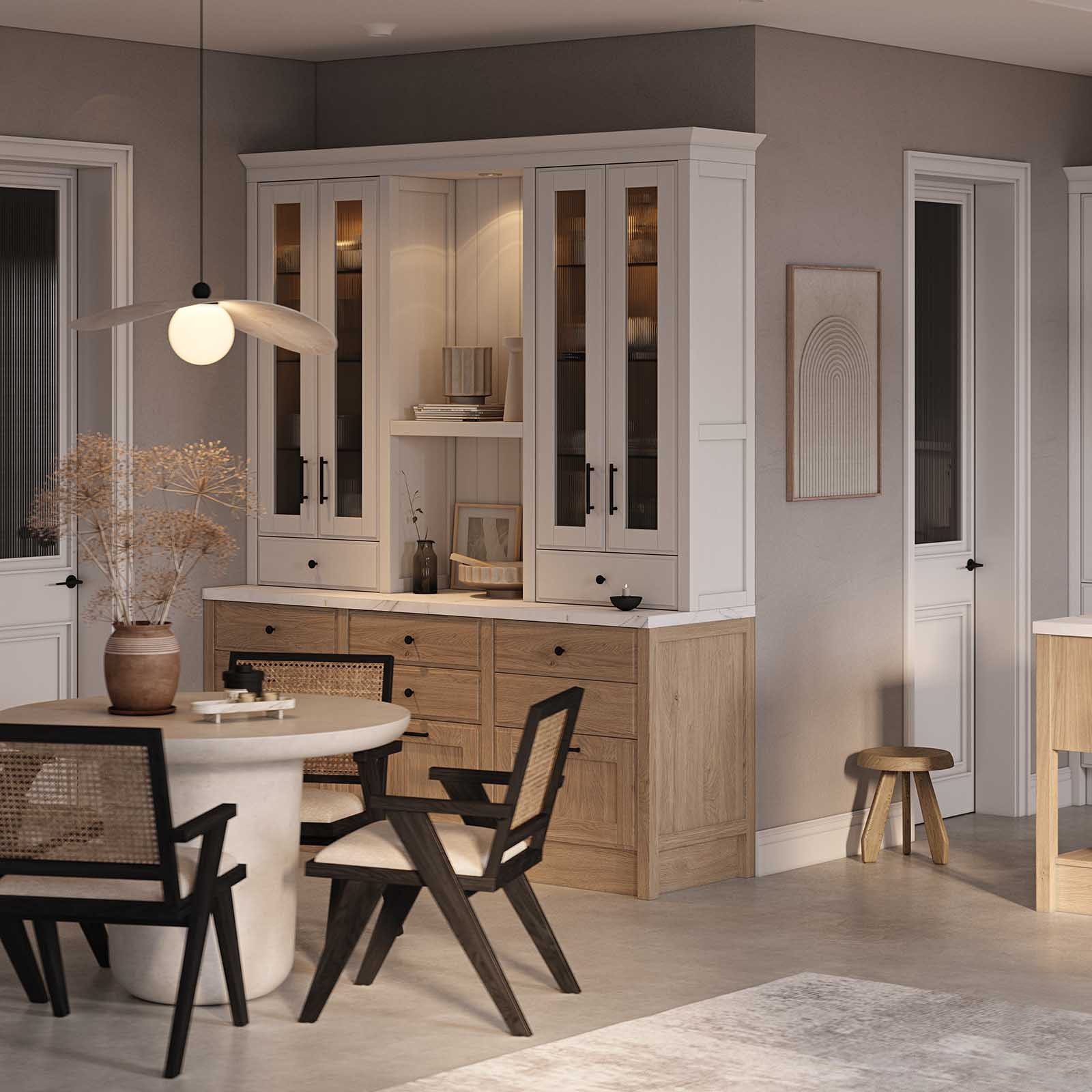 Fronts: Т737 Natural oak wood, color #189 (wax stain White) / 156