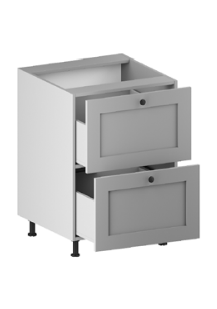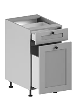 2 drawers (1 small, 1 large for pull-out trash cans) Quadro 25 runners