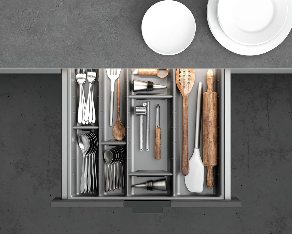 Plastic cutlery tray with dividing elements for individually organized drawer M / internal drawer M